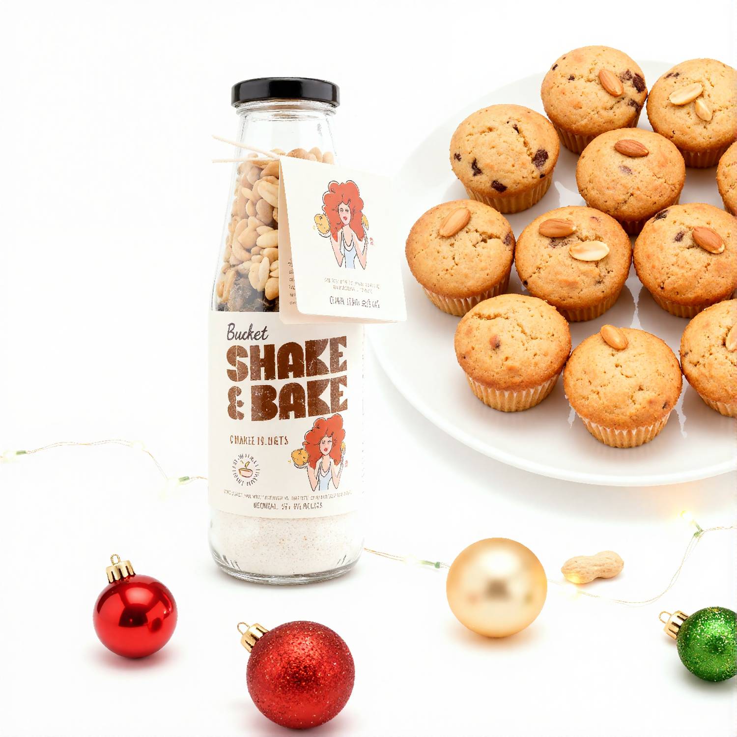Our muffin mix in a glass bottle with pumpkin seeds and peanuts offers the perfect combination of moist, fluffy muffins and the crunch of seeds and nuts.