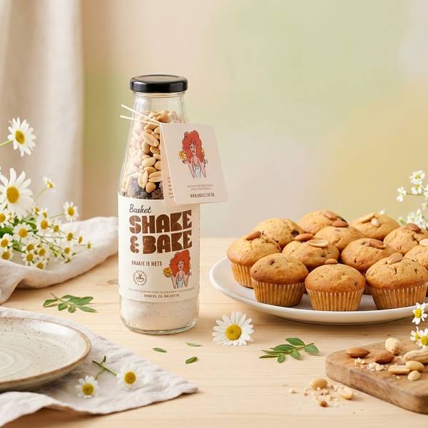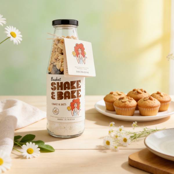 Basket smeša za mafine u staklenoj flaši sa golicom i kikirikijem donosi savršenu kombinaciju sočnog testa i hrskavih semenki i orašastih plodova.