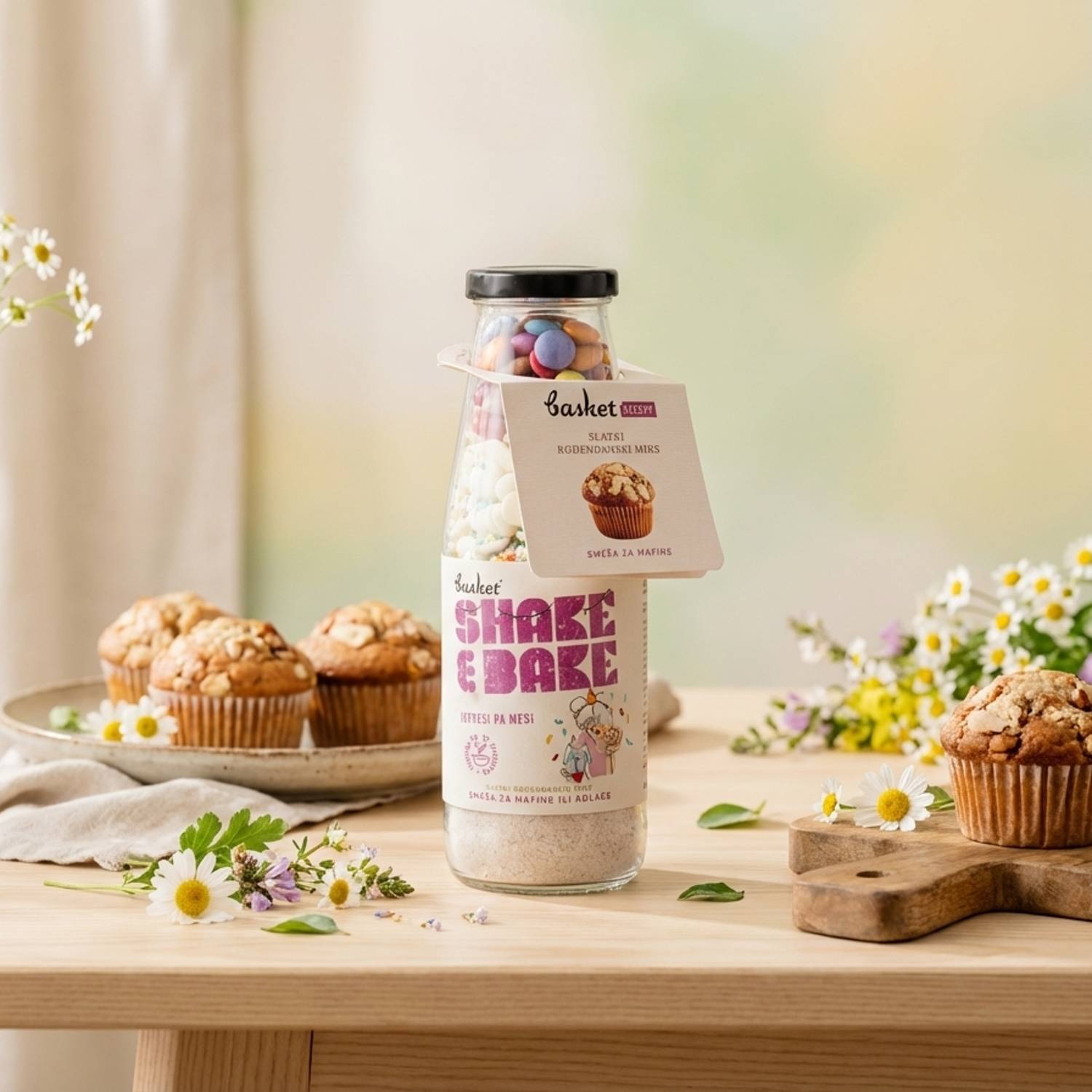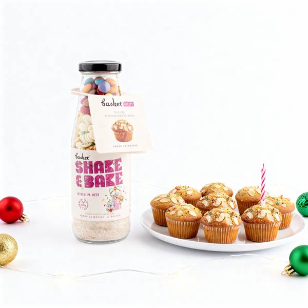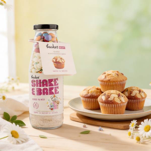 Naš Rođendanski miks u staklenoj flaši sa heljdinim brašnom, bademovim brašnom i komadićima bele čokolade donosi u vašu kuhinju ukus praznika i radosti u svakom zalogaju.